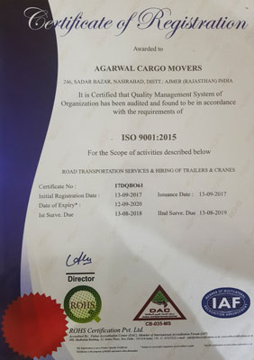 has the reputation of sticking to time schedule in loading, transporting and unloading at the destination point all the material with utmost safety and security. All this has been possible because of the strong lineup of our most dedicated, totally committed and professionally and reliable experienced human resource. Needless to say that in venturing into new contracts, finance have never been a problem with us. Our Company firmly believes in honest entrepreneurship. Venturing into new areas, new routes have been our guiding principle and we have never wavered from this motto. Whatever we undertake, we complete that project to the entire satisfaction of our clients/parties.